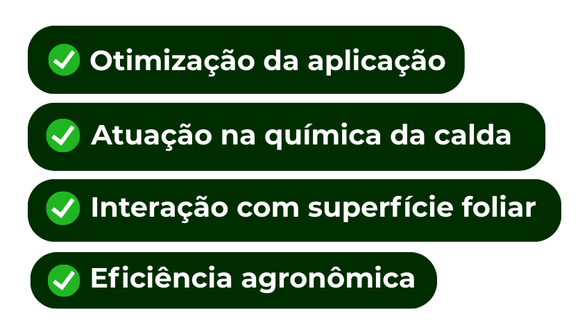 Adjuvante dispersante e umectante que melhora a absorção da calda e potencializa a aplicação.